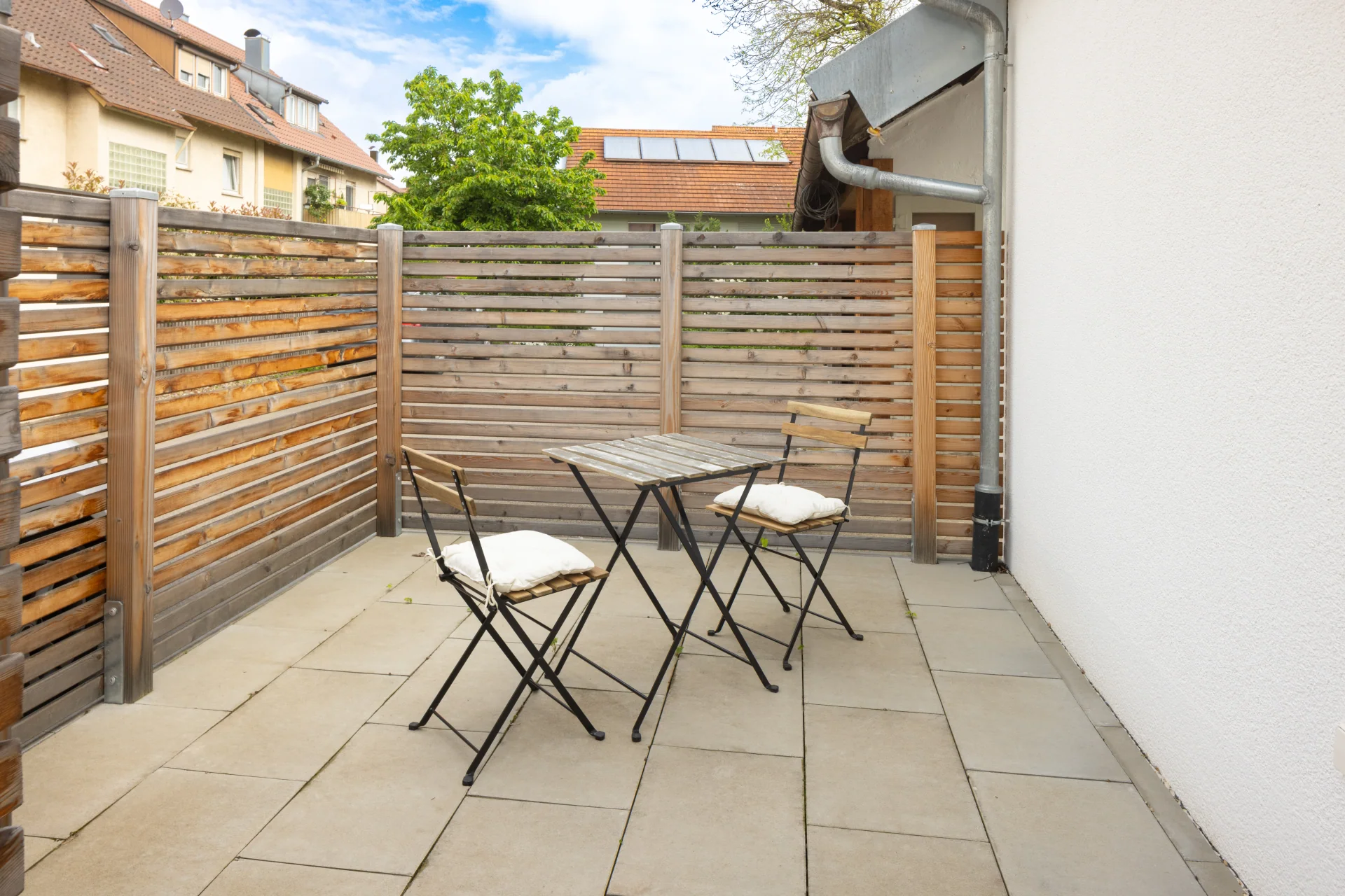 Mit der süßen Terrasse und dem romantischen Dachgeschoss-Schlafzimmer lädt diese Wohnung auf 80 m² zum Entspannen und Wohlfühlen ein. Die Vollholzböden und die geschmackvolle Einrichtung verleihen Wärme und Gemütlichkeit und in der modernen, voll ausgestatteten Küche macht das Kochen richtig Spaß! Wer lieber andere für sich kochen lässt, kann den Pizzaservice um die Ecke nutzen oder eines der nahegelegenen Restaurants besuchen.