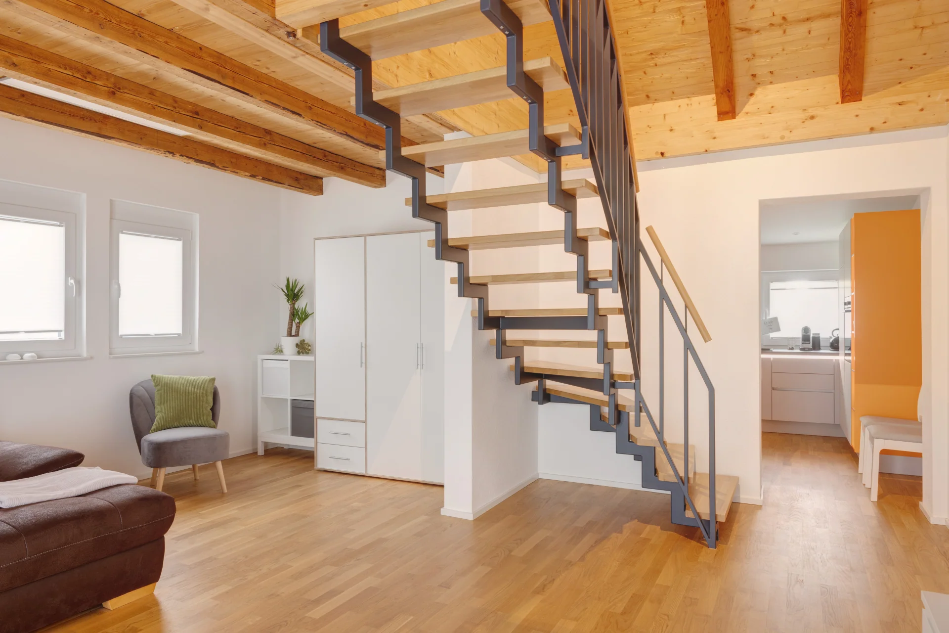 Dieses komplett möblierte und vollausgestattete Maisonette-Häuschen in zentraler, ruhiger Lage verzaubert durch seinen Charme und die geschmackvolle, hochwertige Inneneinrichtung. Orange steht für Lebensfreude. Im Brunnenhäusle wirst Du diese erleben – egal, ob Du allein, als Paar oder Familie unterwegs bist.